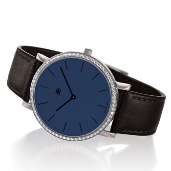Steel Blaze brings you the amazingly sleek new SOB collection of watches All Stainless Steel watch with an ultra thin steel case, navy blue dial, black hour markers and a water-resistant black leather strap with black stitching. Each SOB diamond watch is set with 66 (1.15ct. total weight) of the finest quality white diamonds. The Diamond setting and calibration is preformed in the shops of Heinz Schwarz GmbH, Pforzheim, Germany. In preparation for setting, each of the watch's diamonds are individually calibrated to create an unforgettable circle of light! 40mm wide, 6.5mm thick weighs only 1.3 oz. Scratch-resistant sapphire crystal Ronda Slim-tech 1062 Swiss quartz movement Water-Resistant to 165 feet. includes a 2-year warranty